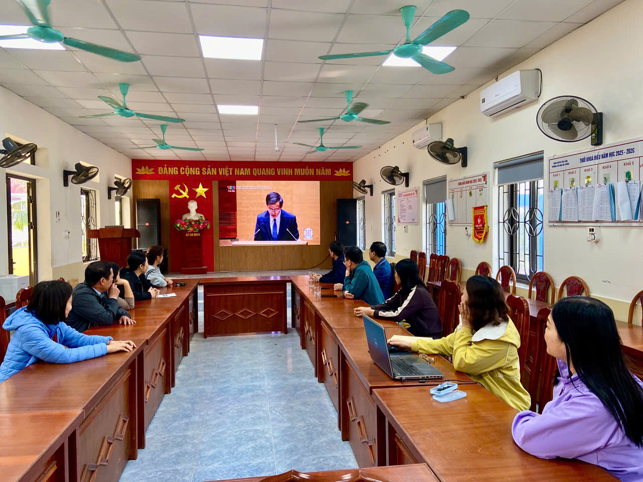 Ngày 07/2/2026 Chi bộ Trường Tiểu học Đại Thắng đã tổ chức cho toàn thể 100% đảng viên trong chi bộ tham gia Hội nghị toàn quốc nghiên cứu, học tập, quán triệt và triển khai thực hiện Nghị quyết Đại hội XIV của Đảng