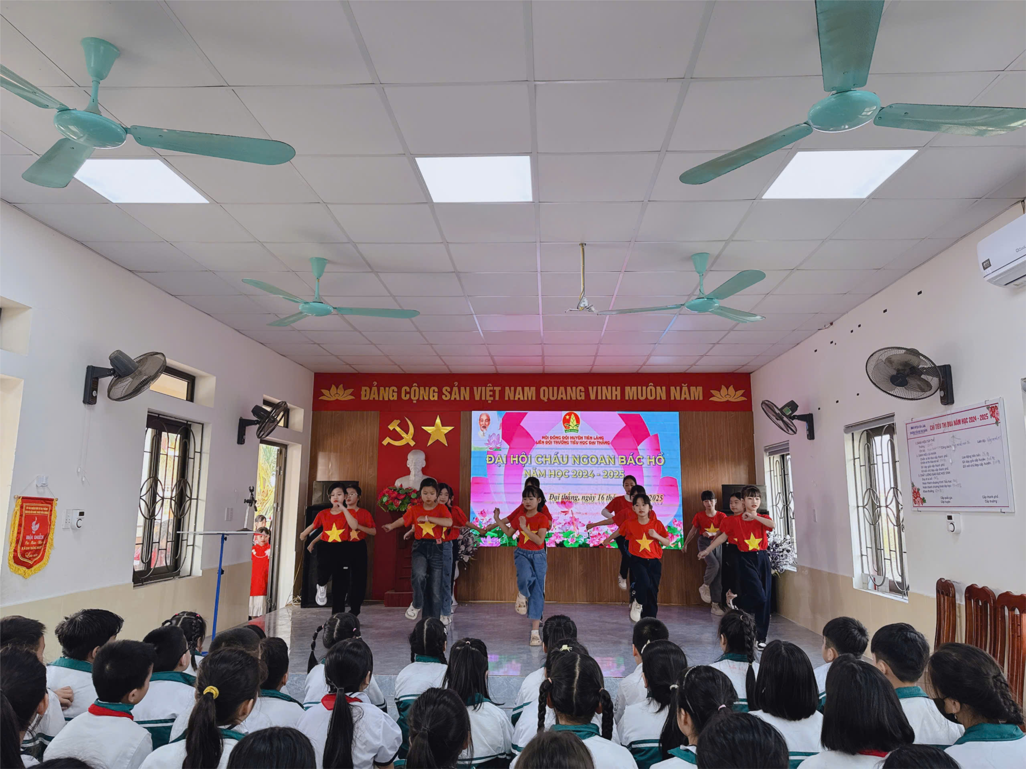 Anh Nguyễn Bảo Anh- Cán bộ Huyện đoàn Tiên Lãng trao giấy chứng nhận danh hiệu Cháu ngoan Bác Hồ Tiêu biểu cho các Cháu ngoan Bác Hồ của Liên đội