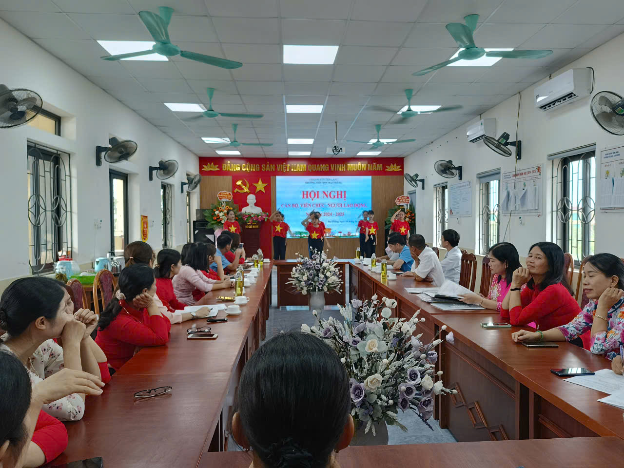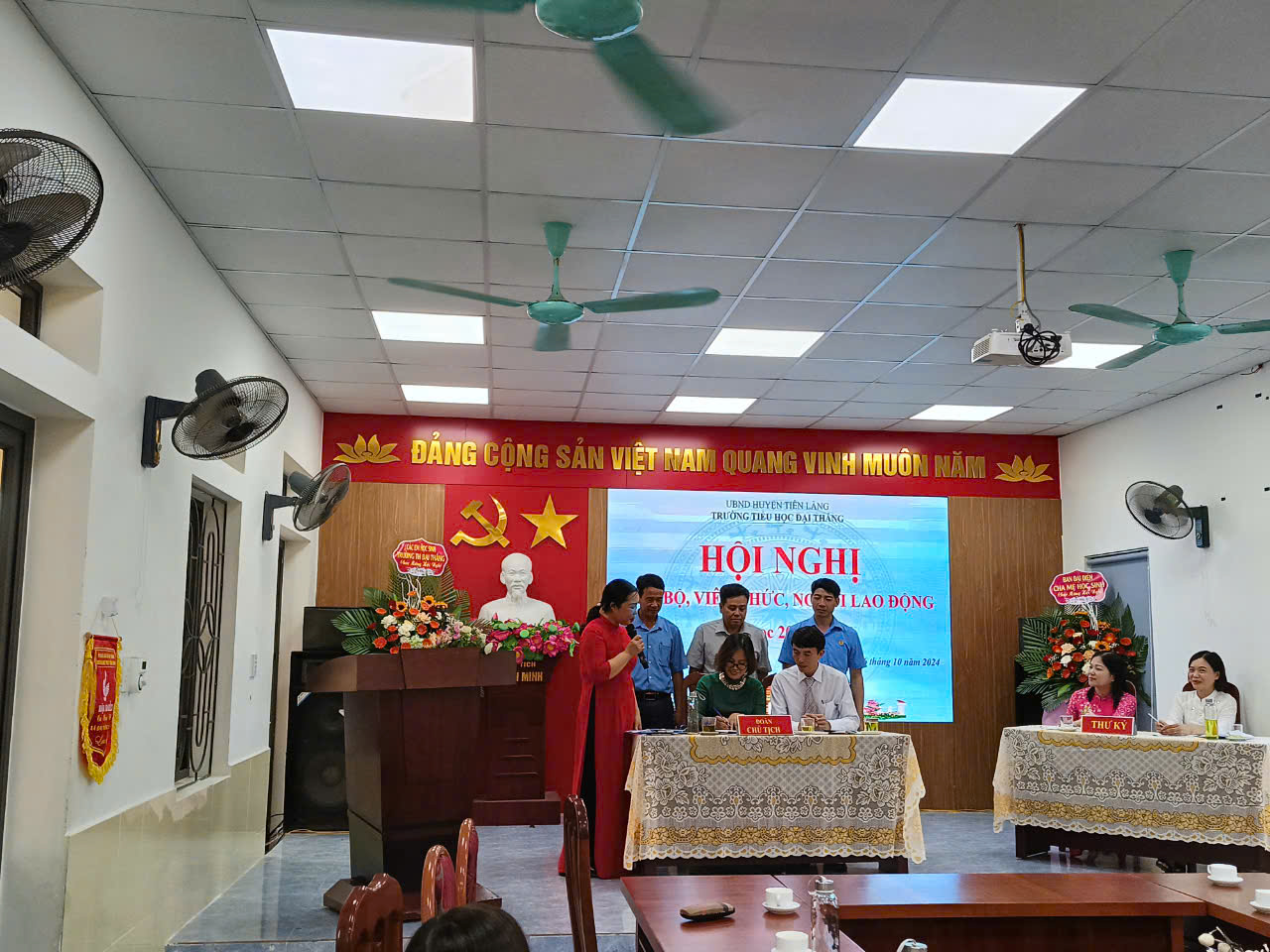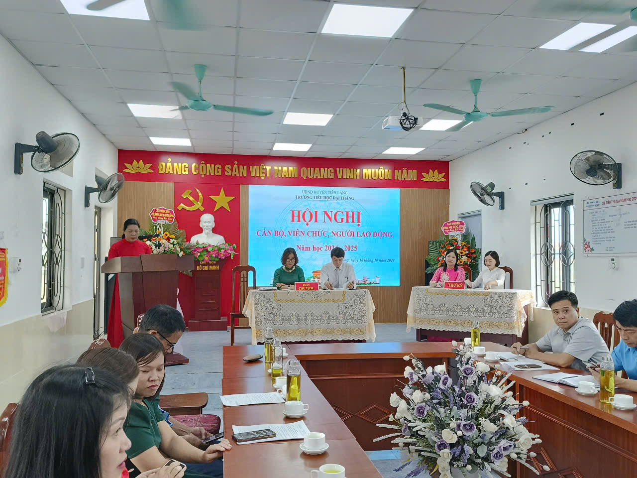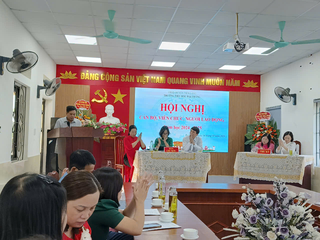 Hội nghị Công chức, viên chức là hoạt động thường niên của trường Tiểu Học Đại Thắng, một mặt đánh giá, tuyên dương những kết quả đạt được trong công tác giáo dục của năm học trước, mặt khác nghiêm túc rút ra nguyên nhân của những hạn chế, tồn tại; từ đó đề ra phương hướng hoạt động phù hợp cho năm học mới. Đây cũng là dịp để mỗi thành viên trong hội đồng sư phạm nhà trường thực hiện quyền dân chủ đề xuất ý kiến, bày tỏ nguyện vọng đối với lãnh đạo nhà trường. Trực tiếp đặt vấn đề để cùng bàn thảo, hội nghị là tìm tiếng nói đồng thuận, đồng tâm, chung sức phát triển sự nghiệp giáo dục của nhà trường. Đồng thời đây cũng là cơ hội để nhà trường kiến nghị những quyền lợi chính đáng của công chức, viên chức và người lao động đối với các cấp lãnh đạo.