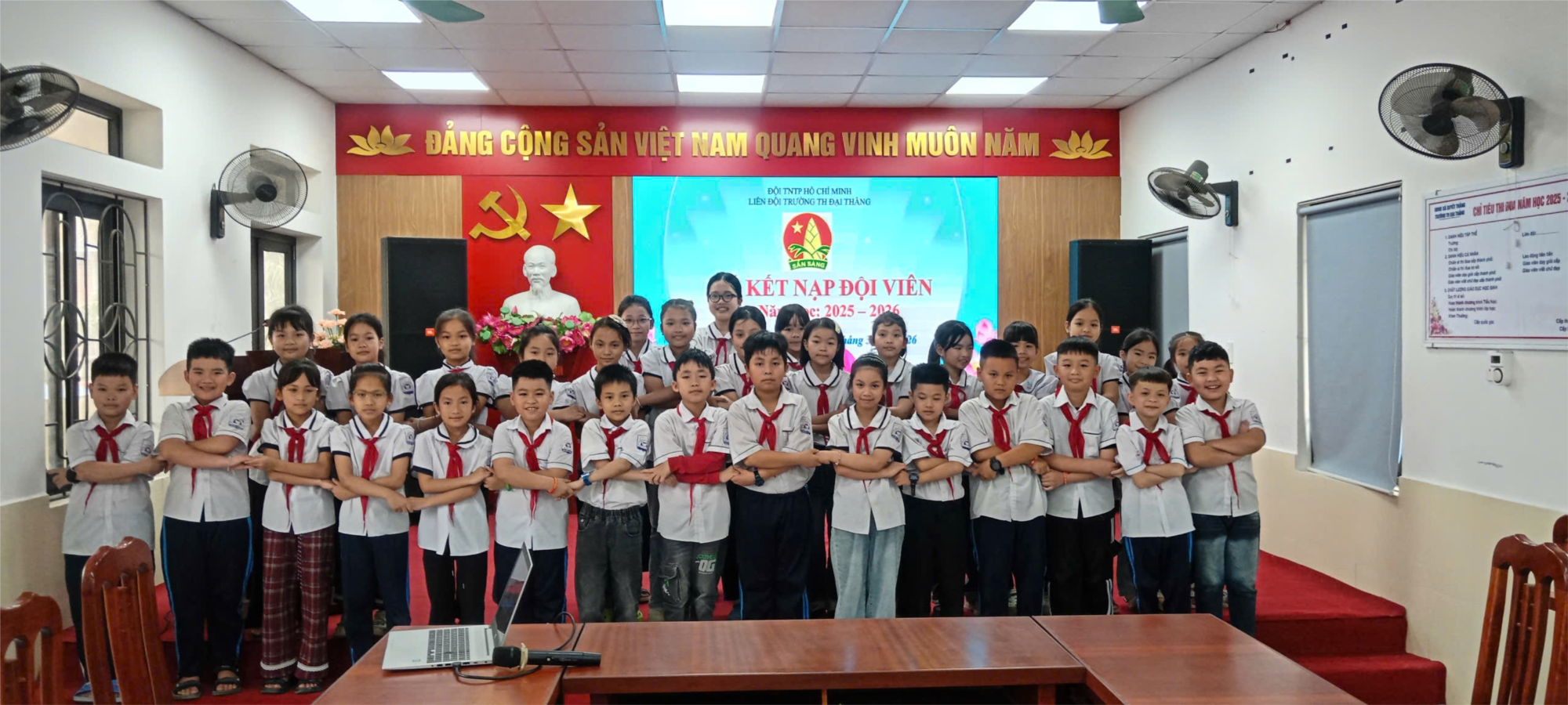 Thực hiện chương trình công tác Đội và phong trào thiếu nhi năm học 2025-2026, được sự nhất trí của Ban Giám hiệu nhà trường, Liên đội Trường Tiểu học Đại Thắng đã long trọng tổ chức Lễ kết nạp đội viên mới cho các em nhi đồng ưu tú.